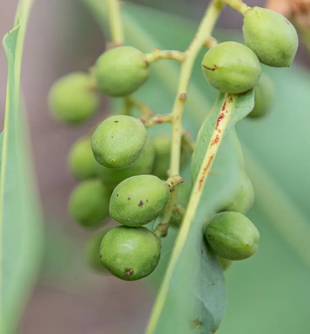 Kakadu plum (Terminalia ferdinandiana) is a small, wild-growing deciduous tree found extensively throughout the subtropical woodlands of northern and western Australia. It has broad leaves and bears an abundant crop of small plum-like fruits with the highest amount of vitamin C in any food in the world! The trees typically bear fruit annually in May, the start of the dry season.
